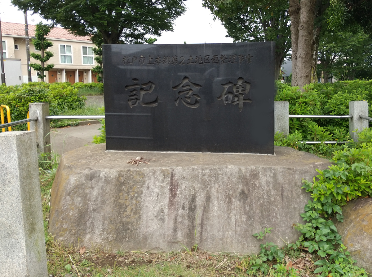 「松戸市上本郷第2土地区画整理事業記念碑」です。